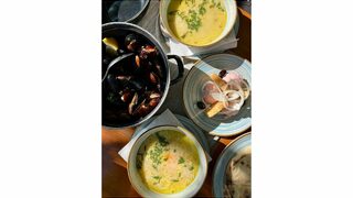 И предвид че през август морето не изобилства от риба, под малката лоза в забравения двор се доверихме на божествено приготвени миди с вино и лющян, тарама и вкусна рибена чорба. "Ще се изненадате," усмихва се той, "тук я правим застроена."
