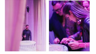 Когато ледът започне да се топи, формата се променя, цветовете се смесват, ароматите се освобождават. Хората, поканени да опитат, да се приближат, да влязат в кръга, стават част от ритуала. "В един момент залата започна да живее - хората се отпуснаха, започнаха да говорят, да се смеят, да рисуват по леда. Духът на Дионис вече беше там," разказва шефът.