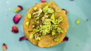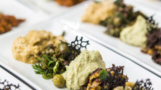 салата от патладжан с тахан и каперси и др.), топло предястие (пълнени топки булгур, сарма от сушен патладжан с месо и дресинг сумак), агнешко с пилаф и десерт грис халва със смокини и чили.
